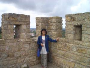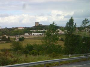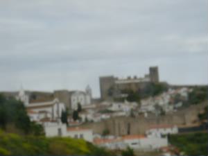 バスの車窓から。風が強いのかしら?風力発電?それとも霜対策??大きなプロペラはたくさんありました。 そして遠くに城壁が。かっこいい! って、そこが目的地のオビドスでした。 |