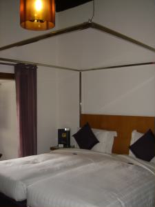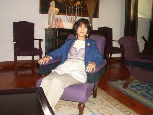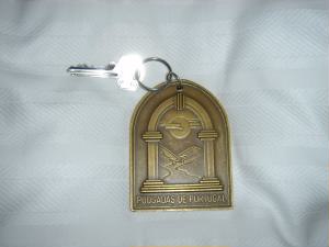 左:部屋の鍵。ポザータ・デ・ポルトガルって書いてあるので、きっとどこのポザータも共通でこのマークを使っているのでしょう。 下は、ロビーです。全体的に紫の濃淡でコーディネートされていて、むっちゃ私好み♪♪♪ |