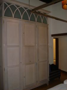 入り口の門からひたすら坂を上り5分。宿泊先のポザータ・ド・カステロに到着。右側が入り口です。 ポザータとは・・・国営の、お城や教会を改装して造ったホテルです。 オビドスのポザータは、カステロ・・・もともとはお城の建物に泊まります。 お城に泊まれるなんで、わくわく♪お姫様気分です。 ここは、全部で8部屋しかないので、予約が取れにくいのだそうです。 左下:ベッド 右下:クローゼット その下:バス&トイレ。ブルーのタイルが綺麗で、とても明るいです。小さな窓にはカフェカーテン。 |