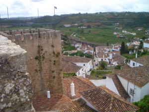 オビドスはぐる〜っと城壁に囲まれた街。入り口の門「ポルタ・ダ・ヴィラ」はイスラム時代に造られたメインゲート。内側のアズレージョは18世紀のものだそうです。綺麗! |