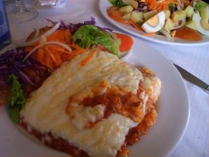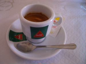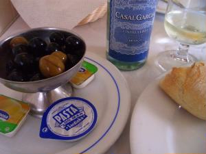 ランチは地球の歩き方にも載っていて、mixiでも情報をもらったお店「プリメイロ・デゼンブロ」で。 店内は手前がカフェ、奥がレストランになっています。壁に青いタイルでボーダーが入っていて可愛いです。 いつものように前菜はオリーブとパテ。 ブラックオリーブが大好きな私にはたまりません!まずはワインをオーダー。白ワインではなく「ヴェルデ(緑)ワイン」。若いワインですっきりとしてランチにはぴったりです。 旦那様は野菜のスープ、サラダ、私はイタリア人なのでラザニア。デザートはビッカと呼ばれるエスプレッソコーヒー。 |