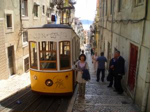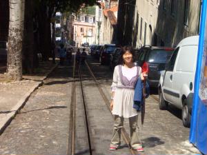 5月3日(木曜日) リスボンで有名なケーブルカーを乗りに行きます。 リスボンにはグロリア線、ラヴラ線、ビッカ線の3本のケーブルカーがあります。 映画などによく出てくるビッカ線。一直線の短い距離ですが、坂の多いポルトガルには必須です。 料金はバスや電車と同じ1.2ユーロですが、これも1日乗り放題のチケット、セッテ・コリナシュで乗ることが出来ます(^^) |