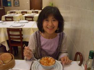 食べ物を前にすると、いい顔するね〜私(爆) このレストランは他の人のポルトガル旅行記に書いてあったレストランを探している途中に、偶然見つけたレストラン。食べている時ふと気づきましたが、向かいが探していたレストランでした(笑) でもとっても美味しかったのでOK! 前菜とパンはさげてもらい、私はアローシュ・デ・ポルポゥ(タコのリゾット)♪おいしい!! |