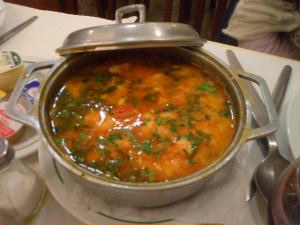 私のオーダーはアローシュ・デ・マリシュコ(魚介のリゾット)。あれ?スープとかぶってる?いやぁ。美味しかったです!!! |