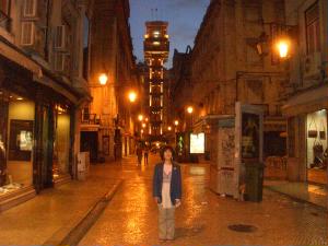 今日の「ロマンチックな夜のお散歩」。夜景が綺麗です! そして、サンタ・ジュスタのエレベーターも綺麗にライトアップされています。 |