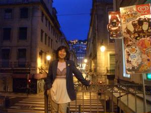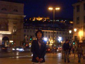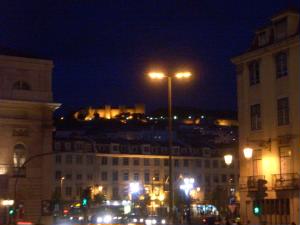 遠くにサン・ショルジェ城のライトアップが見えます。もっとよくお城の夜景が見えるところを探してロシオ広場へ。 明日はお城に行って見ましょう。 |