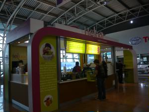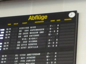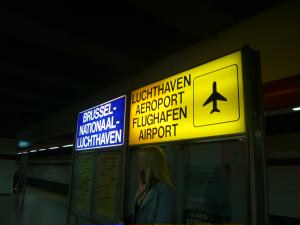 左:チェックイン用の機械でそれぞれチェックインしてからカウンターに並ぶため、機械のところが混雑! 10:40 OS352便 ブリュッセル発ーウィーン行きに乗ります。 空港の中にもチョコレート屋さんがあります。 |