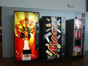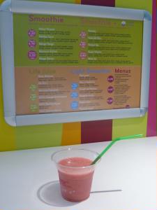 左:コカコーラの自販機が、小便小僧でした(^^; 左下:街でも見かけたフレッシュ・スムージーやさん。とっても美味しいです。 |