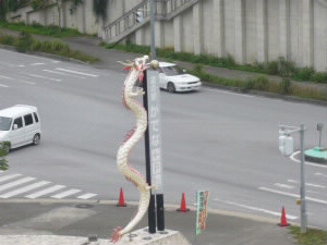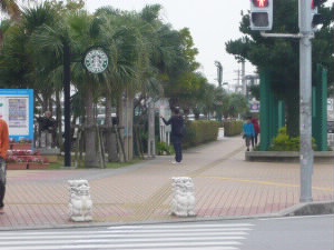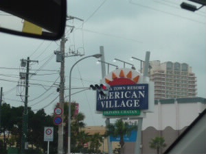 さらに南下して、アメリカンビレッジに寄ります。 左:シネコンやゲームセンター、ショッピングモール、スーパーマーケット、ホームセンター、レストラン街などが集まるエリア。基地で働いている人も多いのか、アメリカ人比率がかなり高いエリアです。トニーローマもあります。 左下:交差点の歩道にはシーサーが♪ 右下:A&Wでおやつ! 旦那様はA&Wのルートビアが大好き。なのでルートビアとフライドオニオン。私はラズベリーソースのサンデー! |