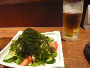 そして宿泊先は、再びJALCITY。 部屋においてあった、るるぶFREEのクーポンを持って、GOSSO GOZZOへ。 左:おしゃれな入り口です。 左下:沖縄に来た日の夜に行ったお店でもそうでした。 海ぶどうは水槽で踊っているんですね。 右下:クーポンのプレゼント、海ぶどうのサラダ。 一皿がでかい!こんなのプレゼントしちゃっていいの? |