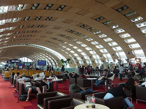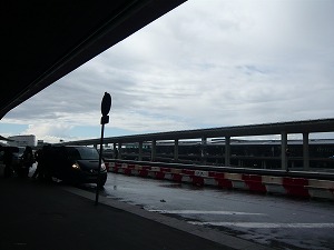 左:2時間5分にフライト。ランチはサンドイッチです。 左下:にわか雨がふってきたシャルルドゴール空港 2Fターミナル。 右下:2Eターミナルに移動。中に入る前に、 化粧品売り場で、母がいつも使っているロクシタンの 練り香水と、私のロールタッチを購入♪ ターミナルの中に入ったら、またしても、明るく 綺麗になってました。 |