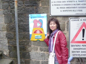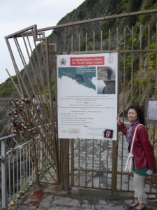 モンテロッソの駅で、3日間乗り放題の「チンクエテッレ・カード」を購入。これでどこでも行き放題! 時々POPな車両が現れます(笑)さて、まずは一番東の町、リオマッジョーレに向かいます。お目当てはリオマッジョーレッジョーレと隣町のマナローラと結んでいる「愛の小道」!ですが・・・なんと!!!Ciusa(しまってる)! |