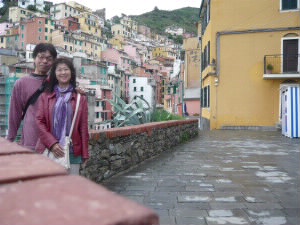2年前の2011年10月25日の大洪水で道が流され、通行止めでした。残念! 気を取り直して、この町を探索しましょう(^^) これぞチンクエテッレ!パステルカラーの家が崖にへばりつくように建っています。 |