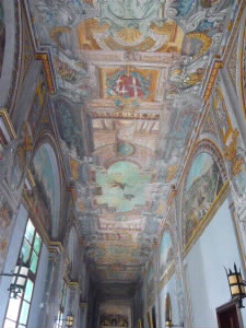 左:立ち入り禁止のマークが可愛いw 左下:天井画も美しいです。 右下:部屋の壁の上部には、マルタ騎士団の歴史が絵で描かれています。 |