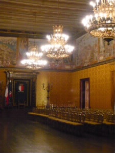 床にも大理石でマルタの国旗が描かれています。 豪華で、でもうるさいきらびやかさではない、とても美しい宮殿でした。 |