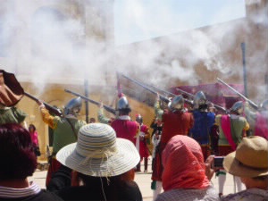 マルタ騎士団の正式名称は聖ヨハネ騎士団。 いろいろな国の次男たちが集められて作られました。ということで、槍が得意な民族、鉄砲が得意な民族、剣が得意な民族・・・など様々な騎士たちがいて、騎士団長にその訓練を見せる・・・というようなストーリーです。 会場の入り口には、騎士団の偉い人(?)の役のおじいちゃんが居ました(^^) 終了後、出演者の方と一緒に撮影できました♪ |