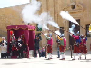 11時からインガーディア観賞です。今回の旅行の2つ目のポイント!!! インガーディアとは聖エルモ砦で行われる、マルタ騎士団の騎士たちの軍事訓練を再現した劇。月に2〜3回、日曜日に行われています。マルタ観光局のガイド小冊子で知り、ぜひ見たい!と思い、日曜日にマルタ島に居るプランを計画しました。 しかし、火薬を使うため、ISのテロ対策で昨年の11月から中止になっていました・・・。 ところが、先週から再開(^^)v やった〜♪ |