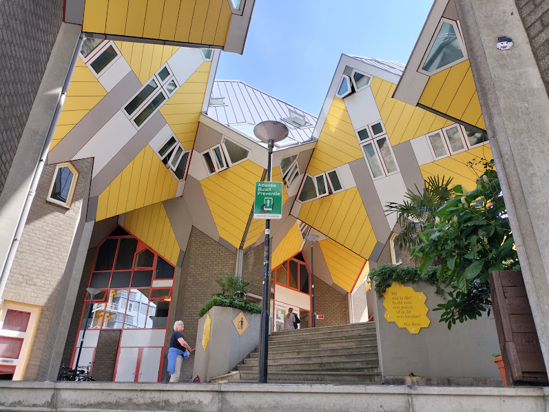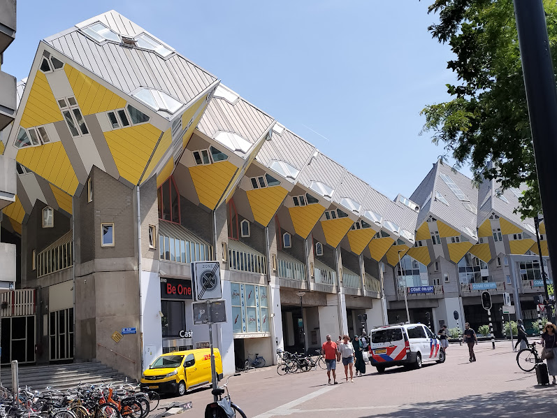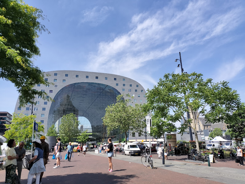 ロッテルダムは近代建築で有名なところ。中央駅は、名実ともにかなりとんがっていますw 今回もトラム、地下鉄共通3日券、25ユーロを購入。 ロッテルダムではホリデーインに4泊します。ホテルは中央駅からトラムで1駅、歩くと5分くらい。10時くらいに到着したのでチェックインはまだできない時間なので荷物を預け、トイレを借りてロッテルダム観光へ。 |