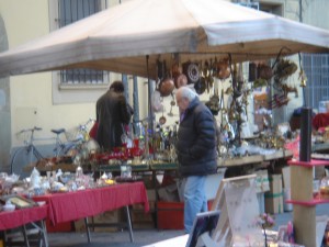 E高級住宅地、フィエーゾレの日曜日のメルカート。手作りの物が多く、穏やかな感じです。蜂蜜、チーズ、ドライフラワー、パン、石鹸などなど。