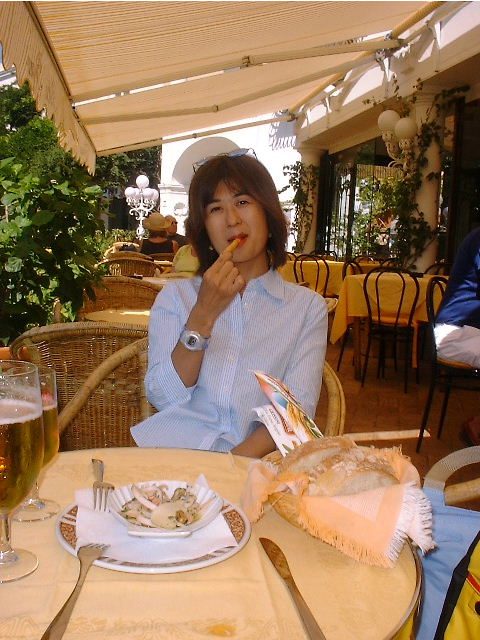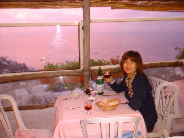 夕飯はRoma通りのRistranteでサンセットを見ながら食べました。
