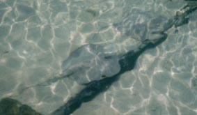 えい、かめ、うみへびなどが岸から 4〜50センチのところにいます。