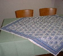 テーブルクロスの上に斜めに掛けて、トップクロスとしても楽しめます。(下のクロスは含まれません)