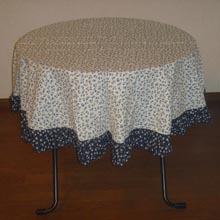 色違いの布で、下の部分にフリルが付いています。アフタヌーンティーのテーブルコーディネートにもぴったりです。長いクロスの上に掛け、ダブルスカートにすると、フリルが強調されて、ゴージャスな感じになります!