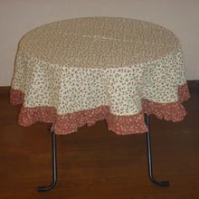 色違いの布で、下の部分にフリルが付いています。アフタヌーンティーのテーブルコーディネートにもぴったりです。長いクロスの上に掛け、ダブルスカートにすると、フリルが強調されて、ゴージャスな感じになります!