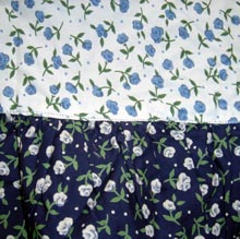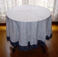 色違いの布で、下の部分にフリルが付いています。アフタヌーンティーのテーブルコーディネートにもぴったりです。長いクロスの上に掛け、ダブルスカートにすると、フリルが強調されて、ゴージャスな感じになります!