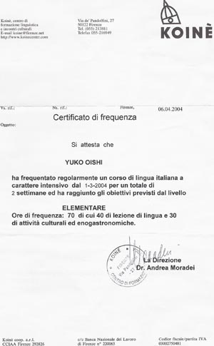 残ったコインでカプチーノとタブレット。 そうして、約5時間遅れで帰国したのでした。 あ〜夢のような日々! フィレンツェに帰りた〜い。 (そうそう、帰れるんです、今年度中に2週間! 日伊協会の奨学生に合格し、またKOINE'校に2週間留学できます!やった〜。マリア様に大感謝です。) |