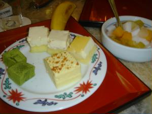 ドルチェは杏仁豆腐、抹茶くずもち、プチケーキ。すごいね・・・私たち(笑)全種類制覇してる? |