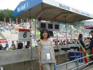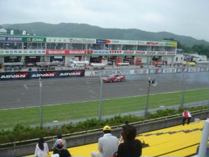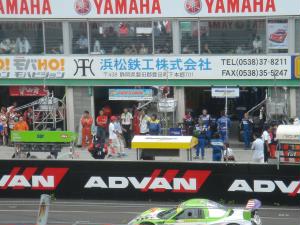 7月23日(日曜) いい天気ではありませんが、雨は止みました(^^)SC勢のピットの正面の席を確保して、朝フリー走行見学。章くんがんばれ〜。 |