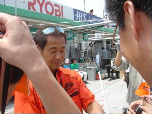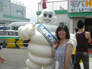 ピットウォーク! 織戸選手、脇坂選手、片岡選手、飯田選手、立川選手、ロッテラー選手、虎之介選手とトヨタ勢のみなさんにサインをもらい、一緒に写真をとりました(^^)ミーハー♪ でも、一番いい笑顔はミシュランのビバンダム君?(笑) |