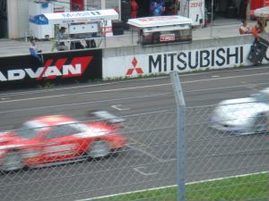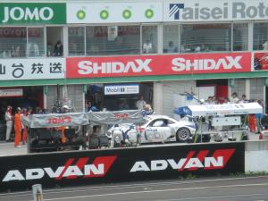 片岡選手からドライバー交代する章選手。5位フィニッシュと思いきや、ラスト3周で「他の競技車両のコースアウトを強いるもの」というドラブスルーペナルティで9位。。。残念 レースはポールポジションの1号車が終始トップでしたが、後半にピット作業で本山選手の23号車が前へ。そこから本山vs立川のバトルで大盛り上がり。ラスト9周で抜いてそのままゴール! 詳しくはGTの公式ページへ |