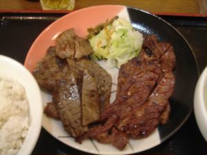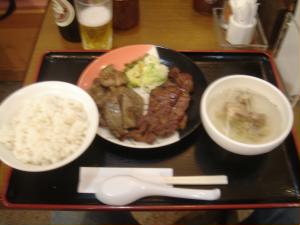 仙台駅で夕飯! なんと駅ビルに牛たん通りなるものができてましたよ。 牛タン2色(塩焼き&味噌焼き)定食(^p^) |