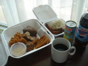 昨日のアウトバックの残りと、昨夜ABCマートで買った、ドールのマンゴージュースとペプシライト。 |