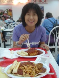 そして前回同様昼食はKマート内のカフェテリアで(笑) 旦那様はスパゲッティ&ミートボール、私はラザニア。どちらも同じミートソースがかかっているので、同じ味です(^^;;; |