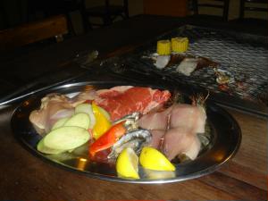 夕飯はSail's BBQで。前回は屋内のNana'sでしたが、今回は外のBBQを選択。 ロブスターテール、チキン、リブアイステーキ、オイスター、ブラックタイガー、ローカルフィッシュ、焼き野菜のコース |