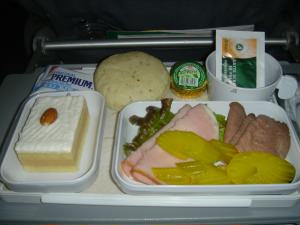 飛行機は空いていて、私が座った3人席は私だけだったので、長くなって寝ることができました。でも、あまり眠くなかったため、映画を4本観ちゃいました(^^; そして到着前の軽食。 |