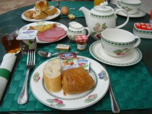 パンの種類も豊富♪ボンヌママンのジャムやはちみつも、た〜くさん種類があります。 カフェオレをお願いすると、コーヒーと牛乳がポットできました。ハムも2種類、ヨーグルトの種類も豊富!大満足の朝食です。 |