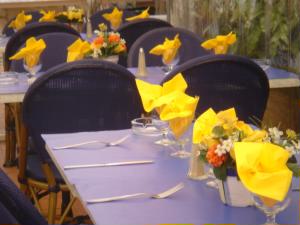 街のレストランのテーブルセッティングもお洒落です。 |
