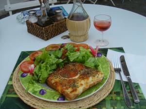 13時にニースに戻り、シャガール美術館へ。 お腹がすいたので、美術館入り口のカフェでランチ! クロックドムッシュとロゼワイン♪冷えたロゼが美味しい。 |