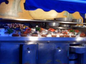 やっぱりシーフードが食べたい! レストランはそれぞれのお店の前で、今日のシーフードをアピール。 |