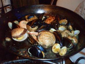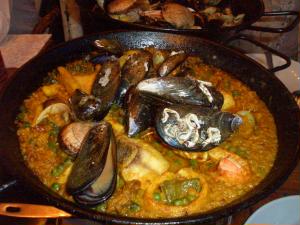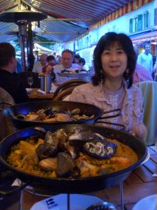 ってことで今日はパエリヤ!(あれ?ここはフランスだよね?) パエリヤとシーフードサラダをオーダーしました。が、まず出てきたのはパエリヤパン用の脚が2つ。・・・ん?オーダー間違えてない?と思ったら、シーフードサラダ登場。 野菜がないサラダだったのね(^^;;;; 絵的に微妙にかぶってない? 味はドレッシング味なのでかぶってはいませんでした。よかった。 ただ、パエリアがちょっと塩味がきつく、リゾットみたいに柔らか過ぎでした。この国にアルデンテを求めてはいけんません。。。 |