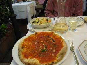 で、フェラーリやさんの横のリストランテ&ピッツェリア&エノテカでピザと温野菜と白ワイン。 ナポリに行くのになんでミラノでピザ食べるの?って帰ってきてから私のイタリア語の先生Immaに笑われました。確かに。 でも、イタリア気分を早く満喫したい人がいたのですよ(笑) |