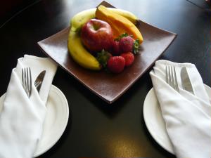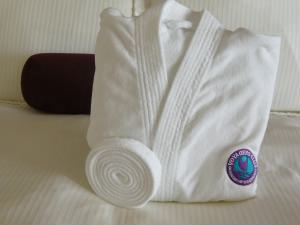 ほわほわのバスローブ。 紐がくるくるで可愛いです。 下はウェルカムフルーツ。 |