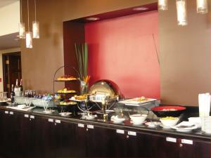 さて、まずはプールに行って一休み〜! さっそくボエジャーズクラブ特典。 17〜19時は最上階(21階)の専用ラウンジで、軽食&ビール&ワインが飲み放題♪ |