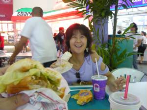 そしてハロウィン用のお菓子がいっぱい! 日本で言う「お徳用パック」的な感じで、子供に配る用のお菓子がい〜っぱい売ってました。 なるほど、アメリカってこうなんだぁ〜(笑) そして、ランチはプレミアムアウトレットのフードコートへ。 私はタコベルでタコス、旦那様はバーガーキングでハンバーガー |