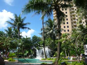 ホテルに戻りプールへ! アウトリガーの宿泊者はカウンターで専用カードを渡すと、手に不織布のマークを巻かれ、タオルが借りられます。 |
