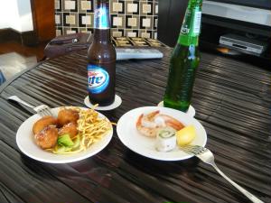今日はお刺身が海老でした(昨日は白身魚でした)。 そしてカールスバーグとミラーライト。 |